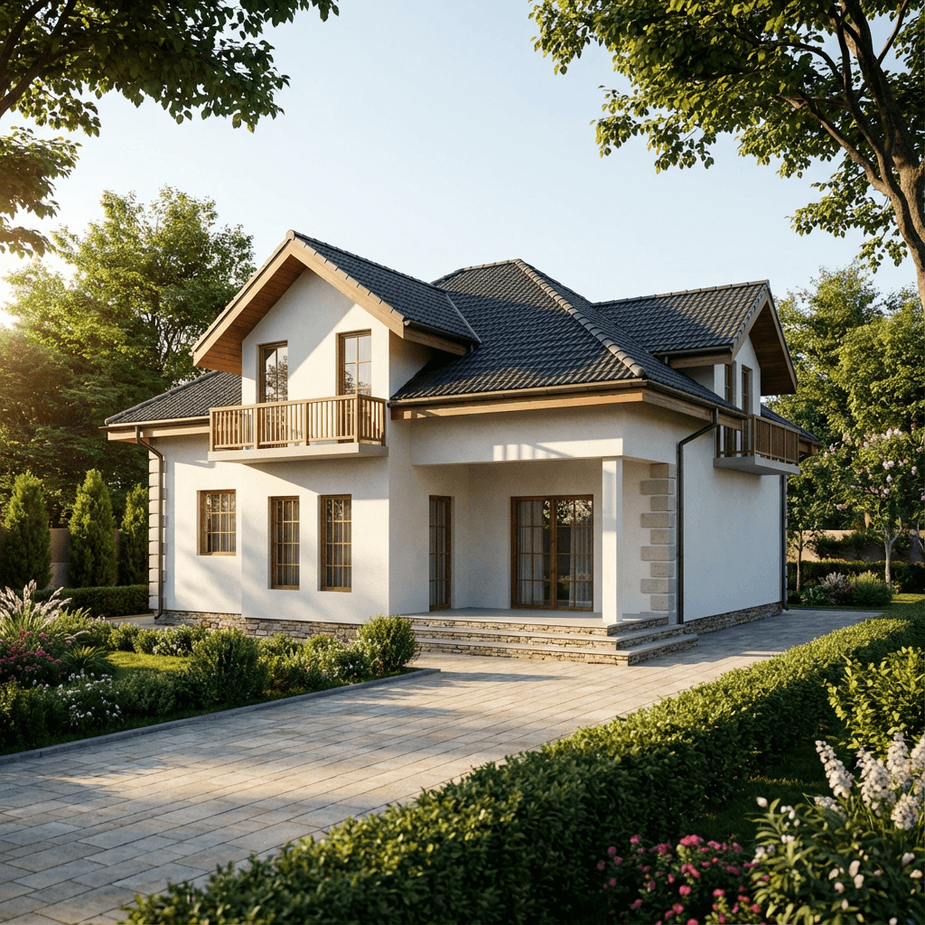 Energetska efikasnost: Predviđena termoizolacija fasade i krova zadovoljava visoke standarde, čineći kuću štedljivom.